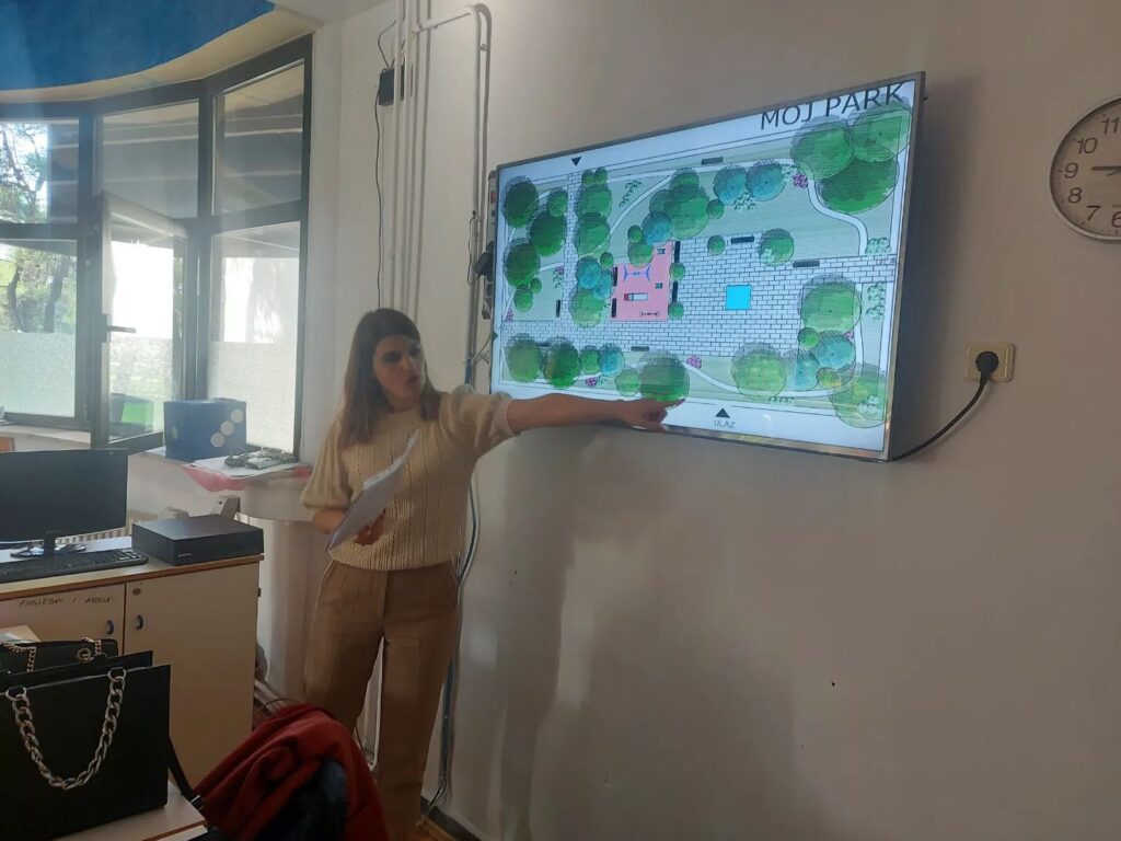 Ona je kroz prezentaciju djeci predstavila način uređenja parkova, dvorišta, zgrada i škola i približila im važnost svog poziva koji predstavlja jednu vrstu praktične umjetnosti.