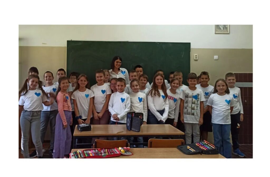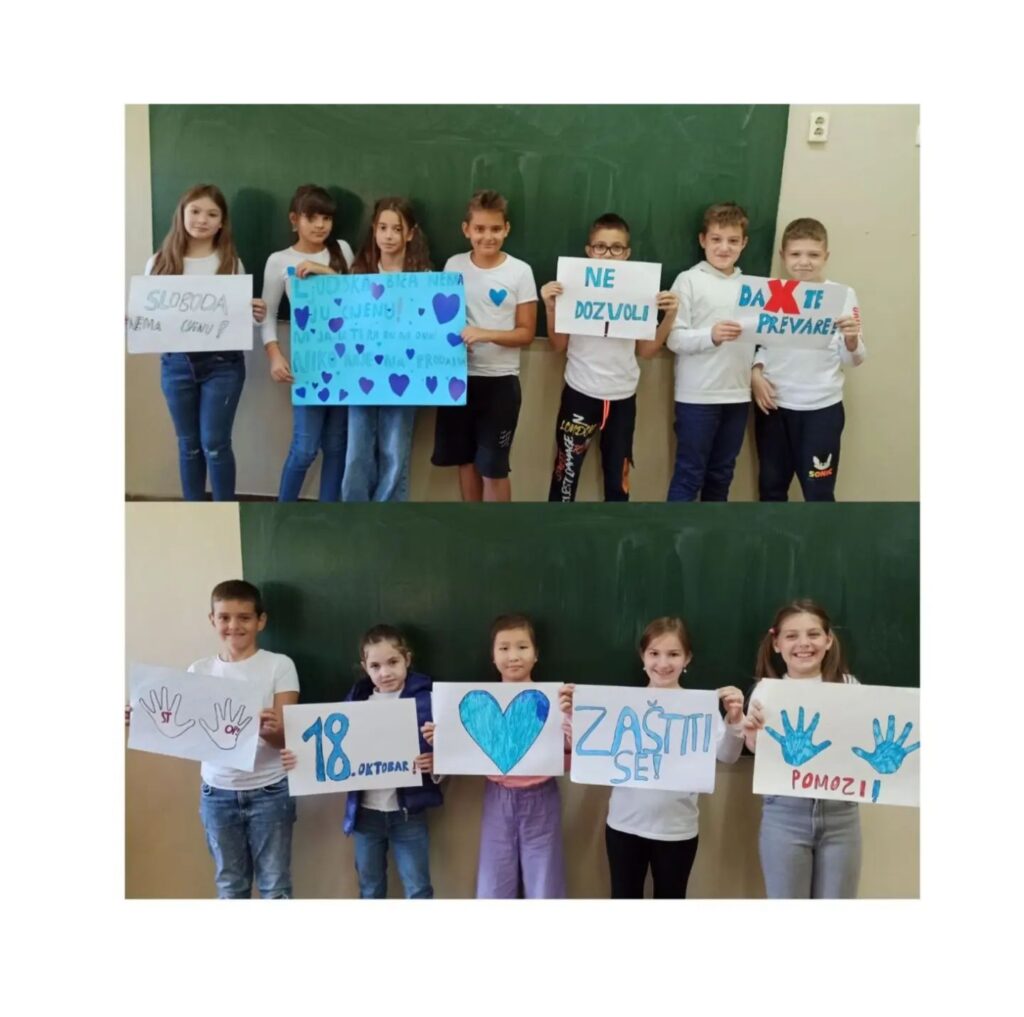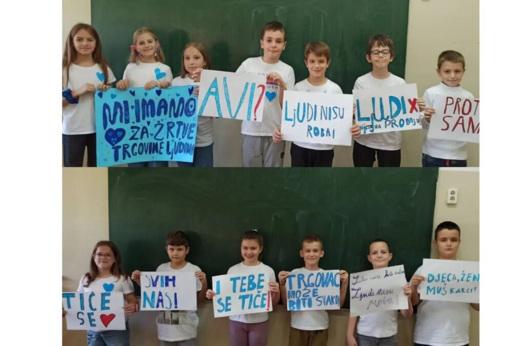 Učenici su nosili bijele majice sa plavim srcima i zajedno sa svojom učiteljicom Jelenom Novović pružili podršku žrtvama trgovine ljudima.