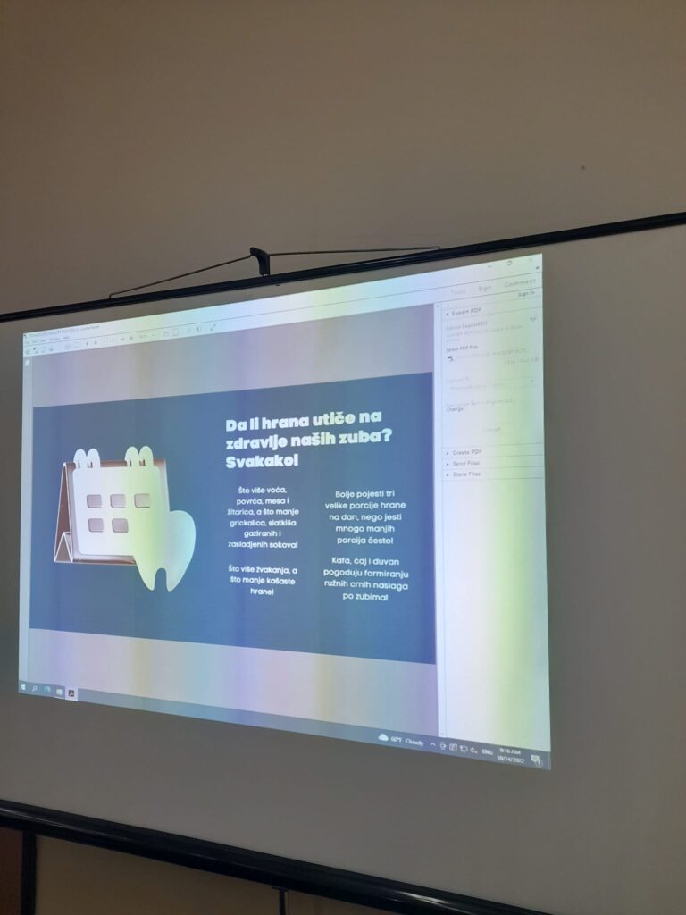 14. oktobra su učenici šestog i devetog razreda prisustvovali predavanjima koja su organizovali studenti šeste godine Stomatološkog fakulteta iz Podgorice.