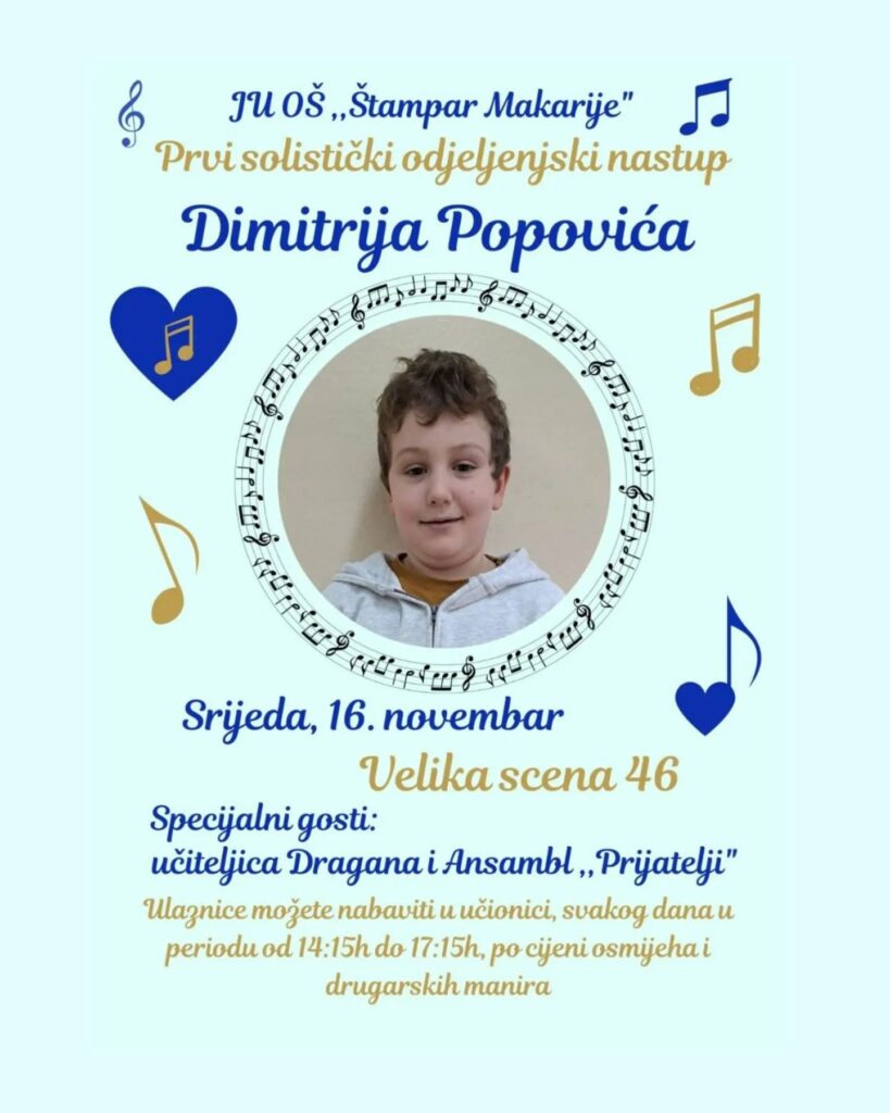 U odjeljenju II-6 učenik Dimitrije Popović danas je održao svoj mini solistički koncert.