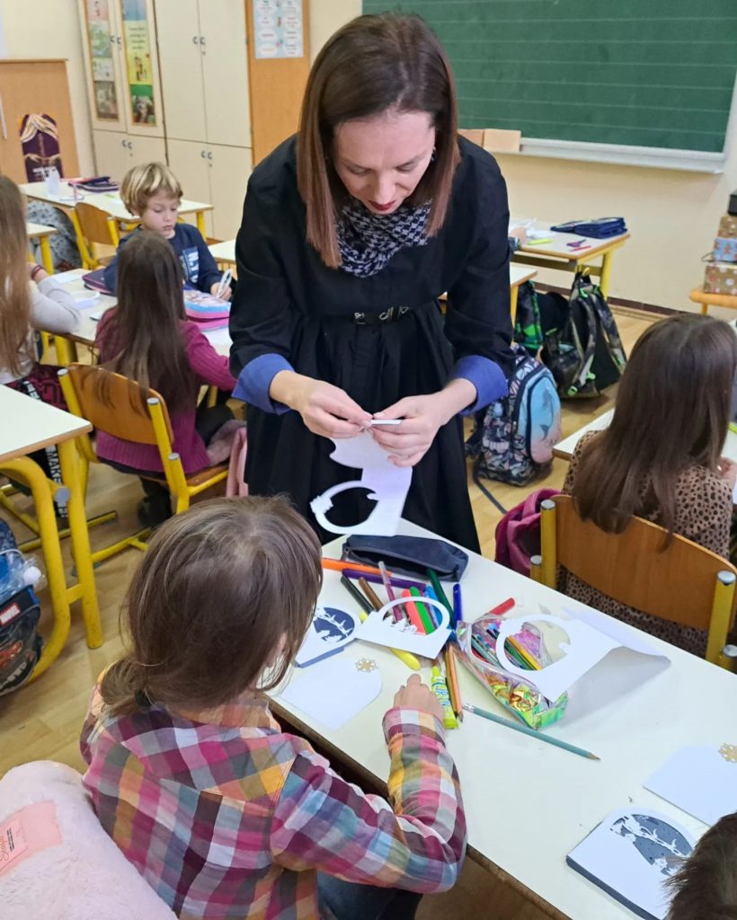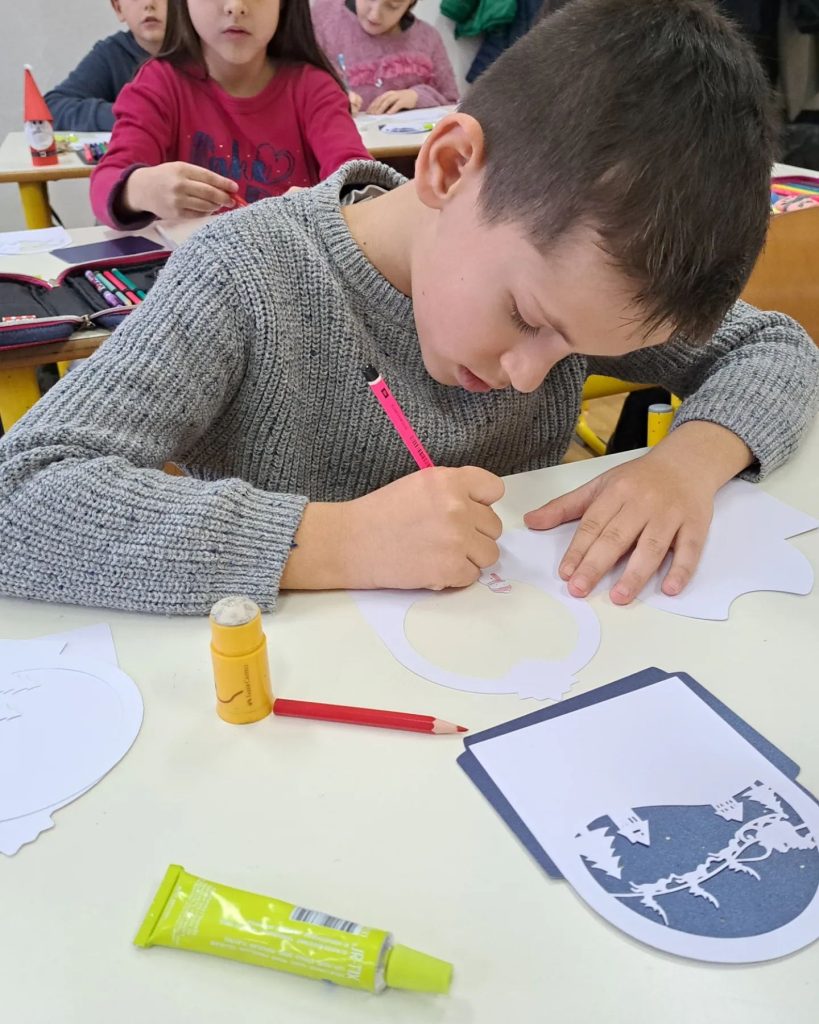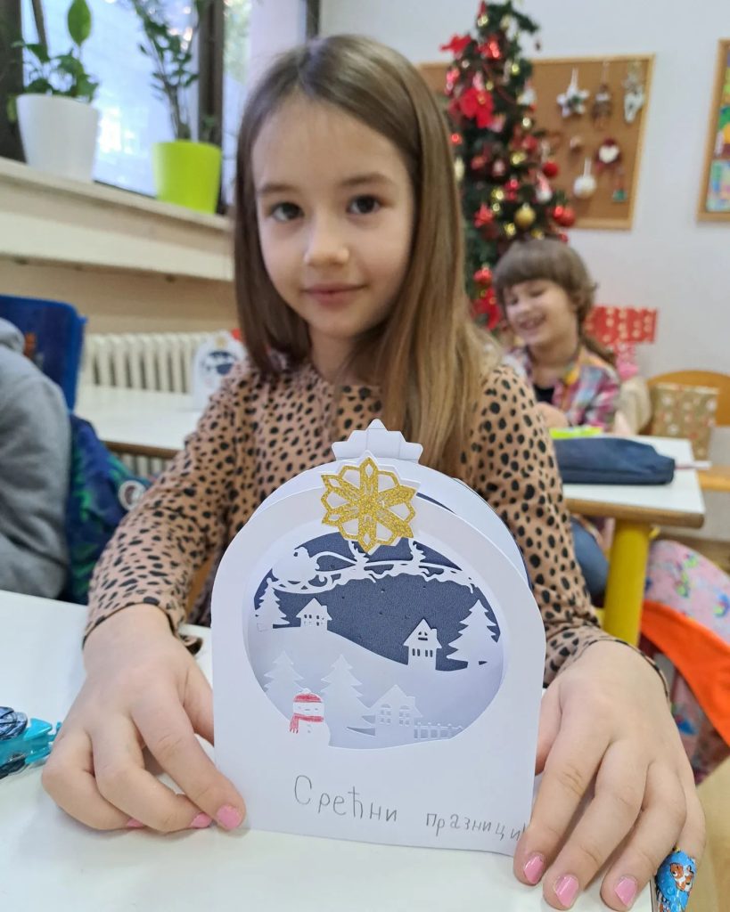 Ovoga puta smo to uradili zahvaljujući gospođi Ivani Medenici iz školice ,,Mali projektanti”, koja je osmislila i izradila 3D čestitke koje su djeca iz odjeljenja II-4 sastavila, ukrasila i poklonila dragim osobama.
