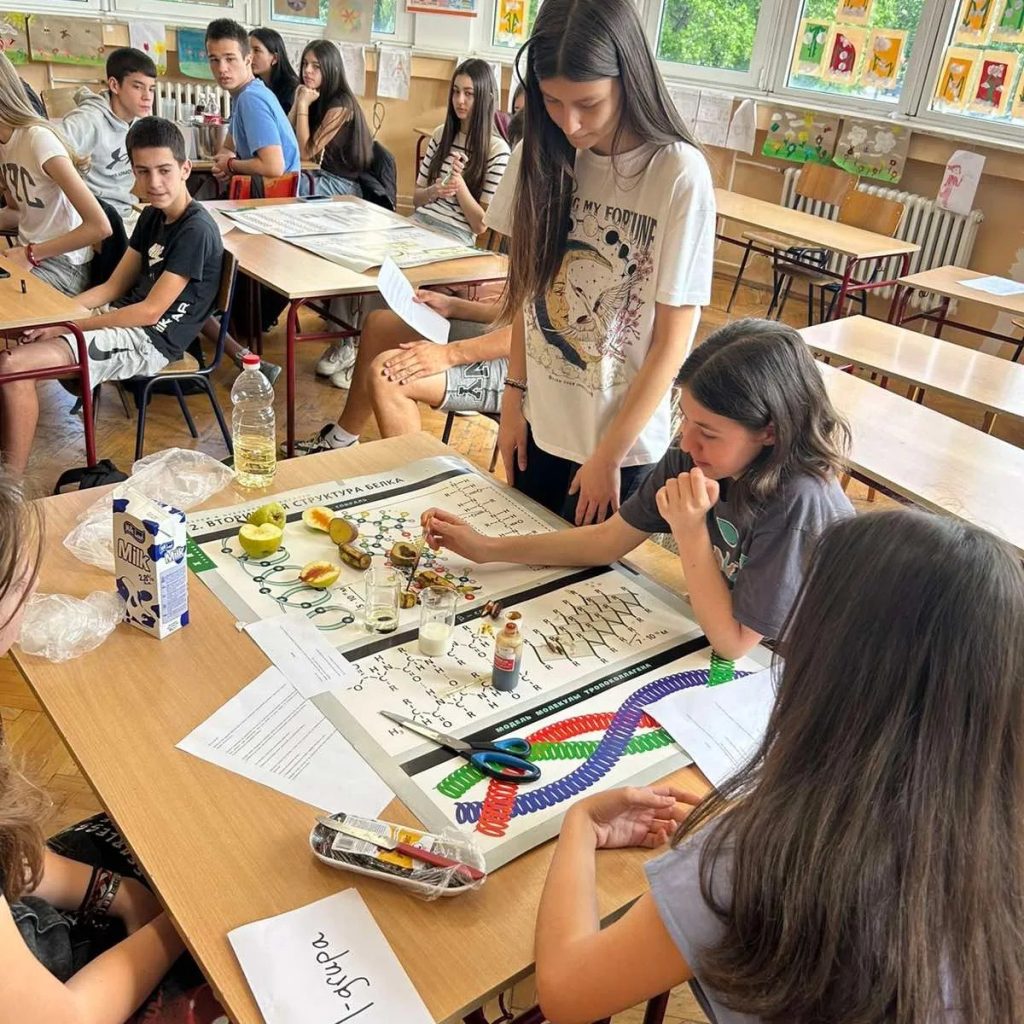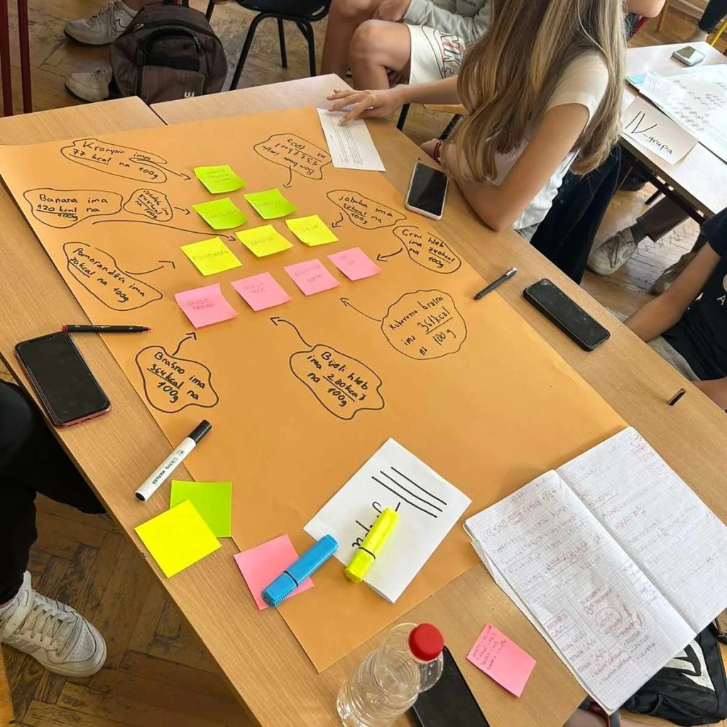 Učenici su timskim radom, uz pomoć rastvora joda, dokazivali prisustvo skroba u namirnicama (mlijeko, ulje, urme, banane i kruške), da li se skrob (brašno) i celuloza (vata) rastvaraju u toploj ili hladnoj vodi, koje namirnice sadrže visok ili nizak glikemijski index, kako se vari skrob i kakve posljedice mogu biti izazvane njegovim prevelikim unosom, ali i šta izaziva ,,erupciju” mjehurića u koka-koli.