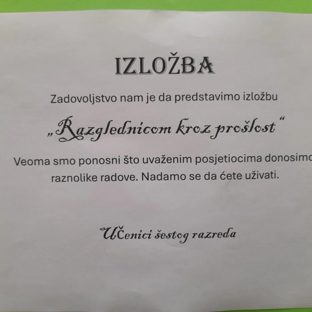 Čas se ujedno nadovezuje na izložbu na kojoj su predstavljeni eksponati radova učenika VI razreda pod