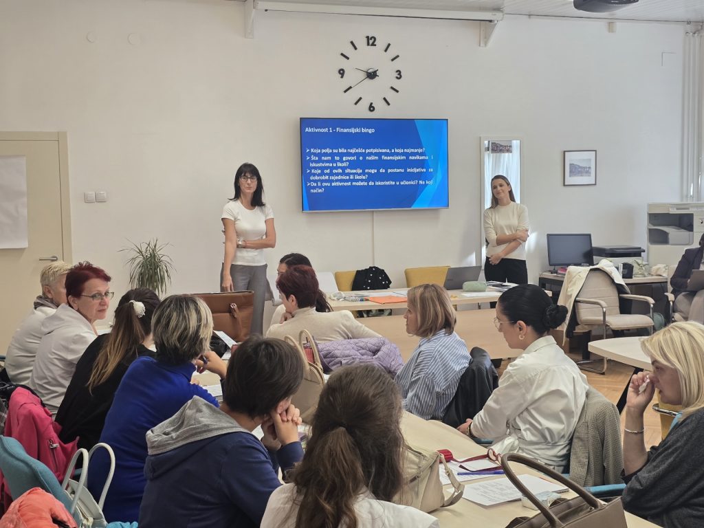 Profesori razredne i predmetne nastave OŠ „Štampar Makarije“ uspješno su prisustvovali seminaru Unapređivanje finansijske pismenosti i socijalnog preduzetništva.