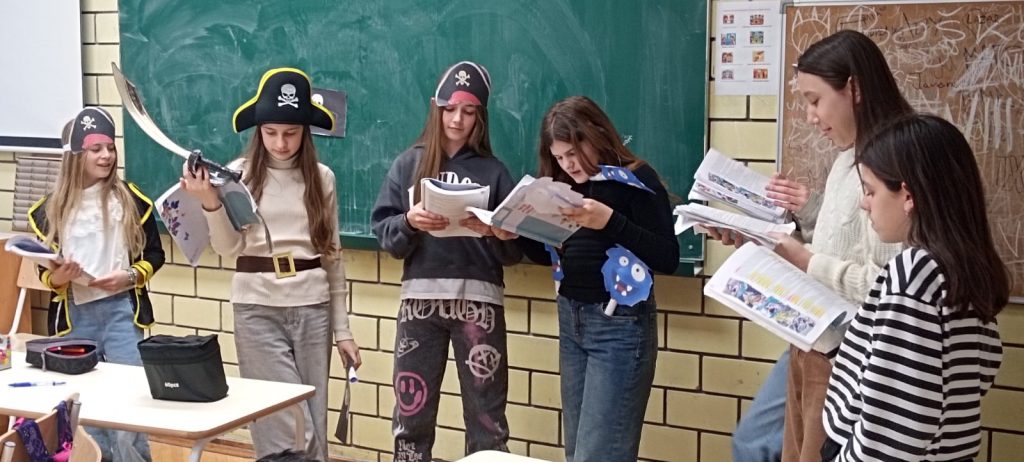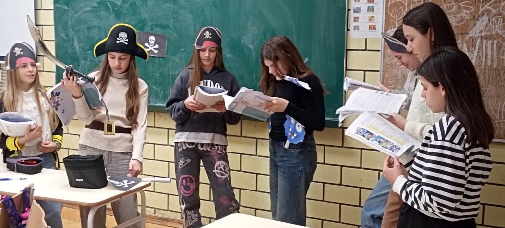 U okviru časa CSBH jezika i književnosti, u dijelu predviđenom za realizaciju grupnog rada, učenici odjeljenja VI-3 oživjeli su likove gusara, inspirisani radio-dramom „Kapetan Džon Piplfoks“ Dušana Radovića.